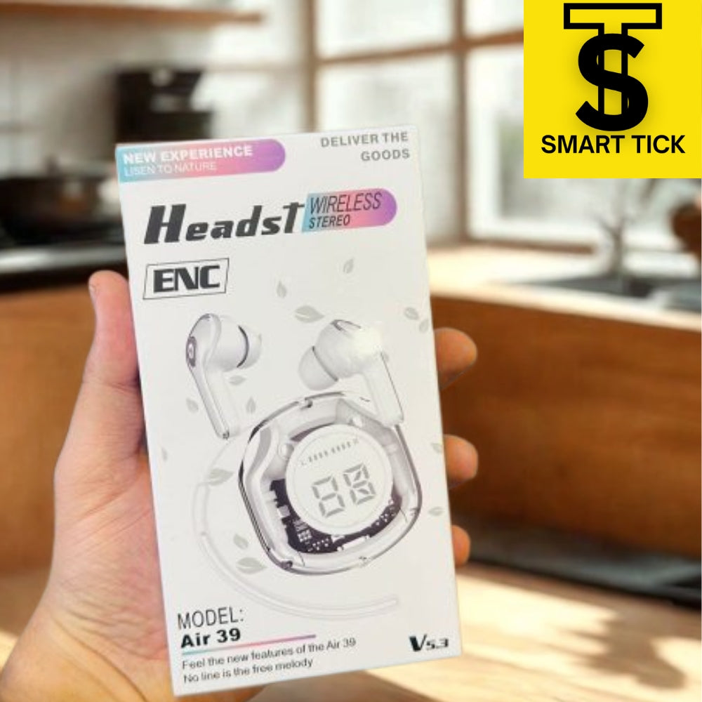 Air39 Wireless Earbuds Air39 Airpods Air39 Earbuds Crystal Clear Sound, Bluetooth 5.3, Transparent Case, Heavy Bass Stereo, Noise Reduction, Sports Headset with Microphone, Waterproof, LED Display airpods