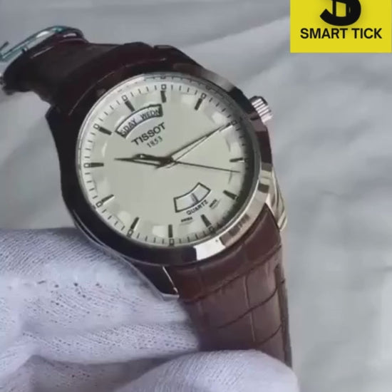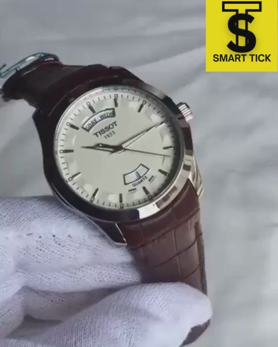 TISSOT Classic (White) with Day and Date along a leather strap