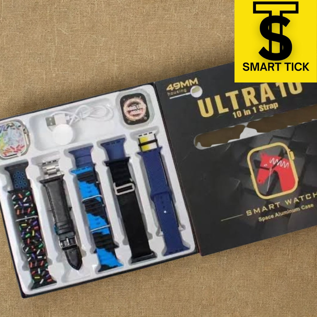 Ultra Smart Watch 10 in 1 Straps + Jelly Case Super HD Display BT Calling Wireless Charging ( Multi Color Straps)